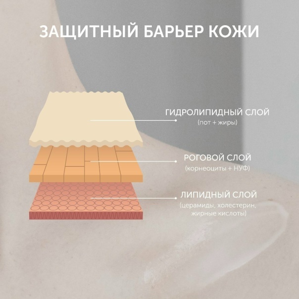 Кожный барьер — это многослойная защитная система эпидермиса, которая предотвращает потерю влаги, защищает от внешних агрессивных факторов (бактерий, аллергенов, УФ-излучения) и регулирует обмен веществ в коже. Его нарушение приводит к сухости, чувствительности, воспалениям и преждевременному старению. Укрепление барьера требует комплексного подхода: правильного ухода, защиты от внешних воздействий и коррекции внутренних факторов. Кожный барьер состоит из нескольких уровней: 1. Микробиом — полезные бактерии на поверхности кожи, поддерживающие кислый pH и вырабатывающие антимикробные пептиды.