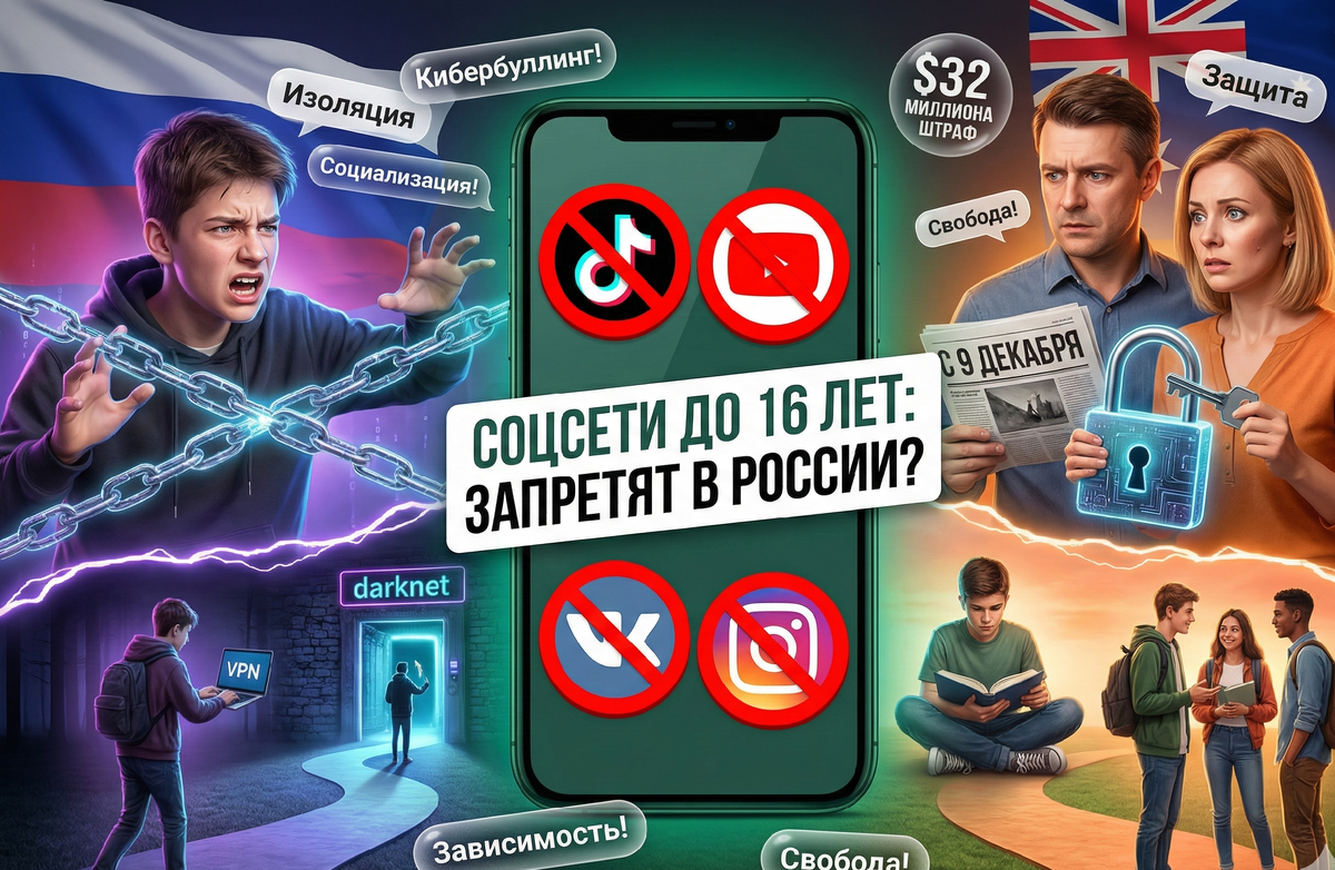 Facebook*, Instagram*, TikTok, X, YouTube — закрыты для подростков до 16 лет. Штрафы платформам — до $32 млн за нарушение.