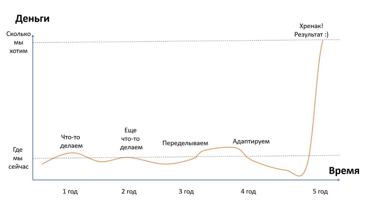 Шикарный план. К слову, есть гипотеза, что если стартап не умер, то до его уверенного роста обычно проходит 5-7 лет. Но что-то я не очень верю в такие гипотезы, т.к. на стартапы очень сильно влияет общая рыночная ситуация.