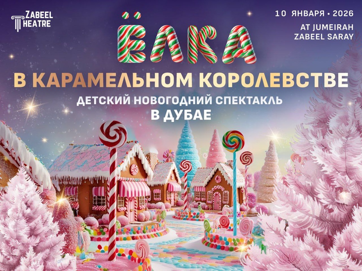 ! Главная традиционная Новогодняя Ёлка приглашает детей и родителей на рождественский спектакль в Дубае и на волшебное представление «Ёлка в Карамельном королевстве», которое состоится 10 января 2026 года в театре «Джумейра Забиль» (Jumeirah Zabeel Saray, Palm Jumeirah). 👉 БИЛЕТЫ ЗДЕСЬ 👈 В этом году гостей ждёт новая добрая сказка о маленькой девочке, которая неожиданно попадает в волшебное Карамельное королевство — мир сладостей, чудес и живых десертов. На своём пути она знакомится с удивительными жителями волшебной страны: • Шоколадным мастером, • Карамельными феями, • Конфетной принцессой, • Сахарными героями Во время спектакля детей ждут: • Сияющая гигантская ёлка и атмосфера сладкого королевства • Яркие танцы живых сладостей и магические превращения • Новые сказочные герои и интерактивные задания для детей • Финальная праздничная сцена Карамельного бала Особенные гости праздника — Дед Мороз и Снегурочка, которые поздравят детей, сделают фото и подарят новогоднее настроени
