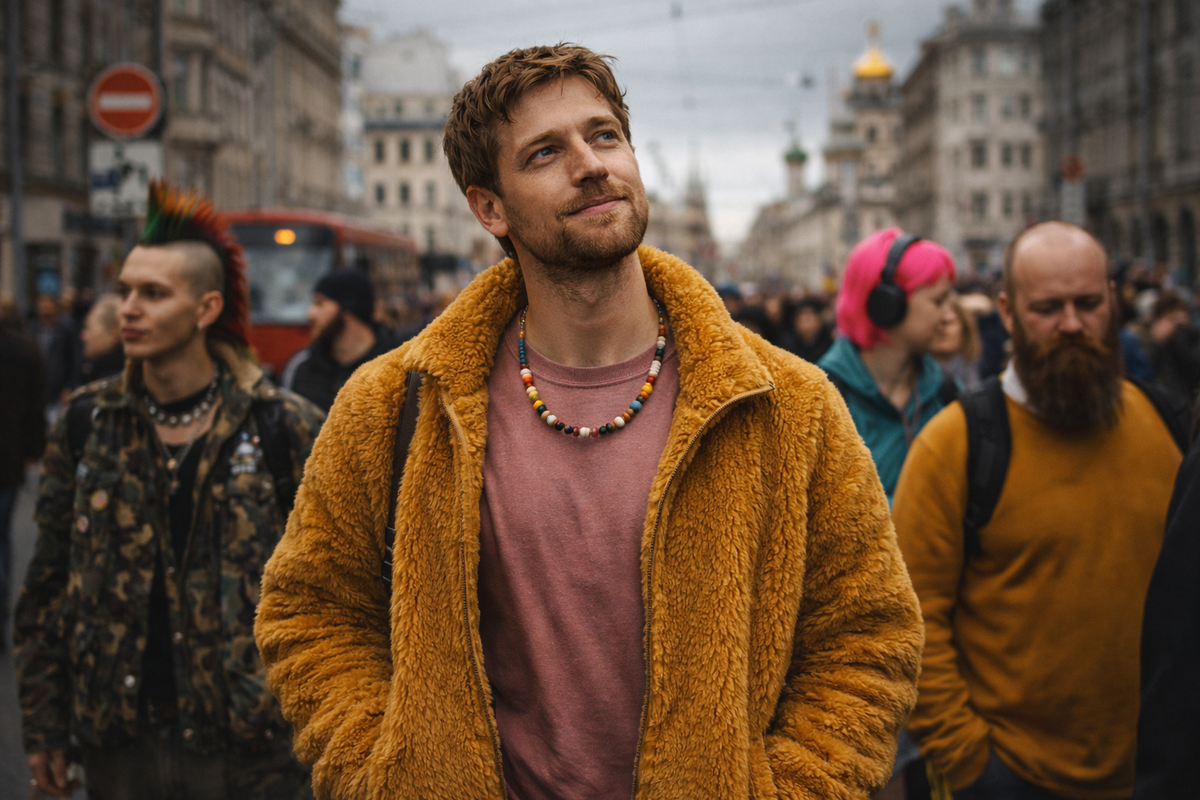 Слишком не вписываешься — обязательно прокомментируют. Люди там постоянно считывают друг друга. Сравнивают. Подстраиваются. Боятся выйти за рамки негласной нормы. В России я ожидал того же. Но столкнулся с удивительным явлением — отсутствием интереса. Я видел людей в самых неожиданных сочетаниях одежды. Мужчину в классическом пальто и кроссовках, которые не подходили ни к чему. Девушку с ярко-зелёными волосами в обычном продуктовом магазине. Парня, который ехал в метро с книгой по философии и читал вслух себе под нос. И знаете что?