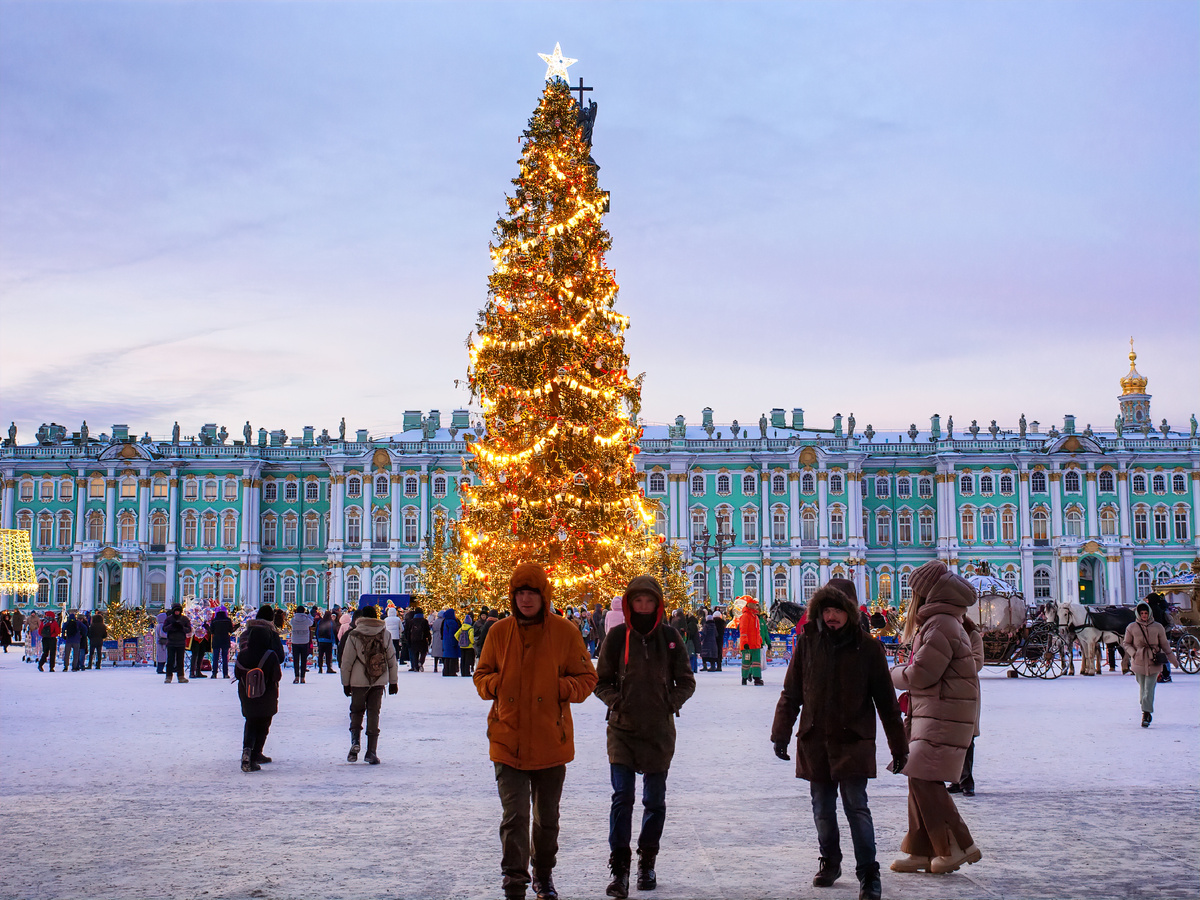 Главная ёлка Петербурга зажглась на Дворцовой площади