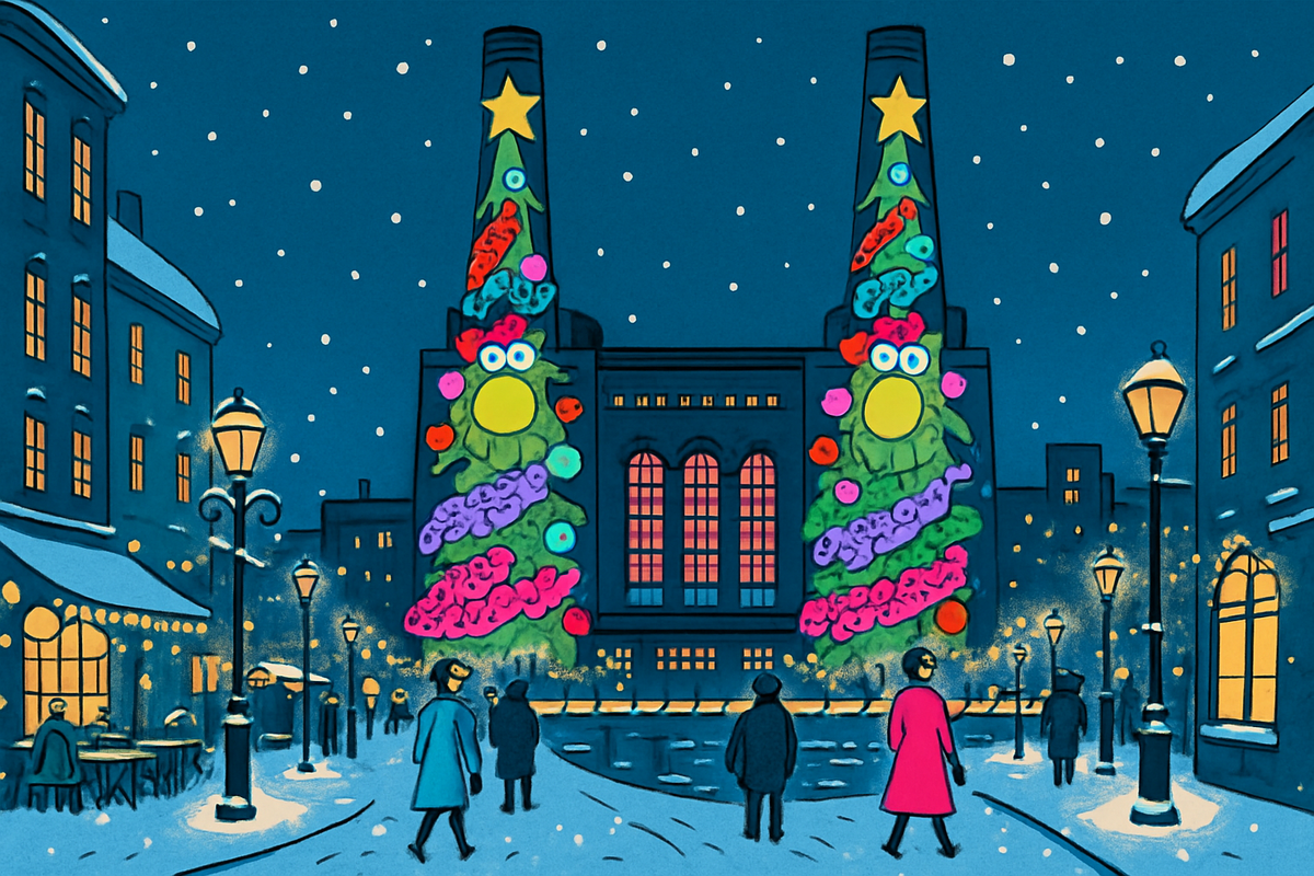 Рисунки победителей теперь будут транслироваться на башнях электростанции вплоть до Рождества.