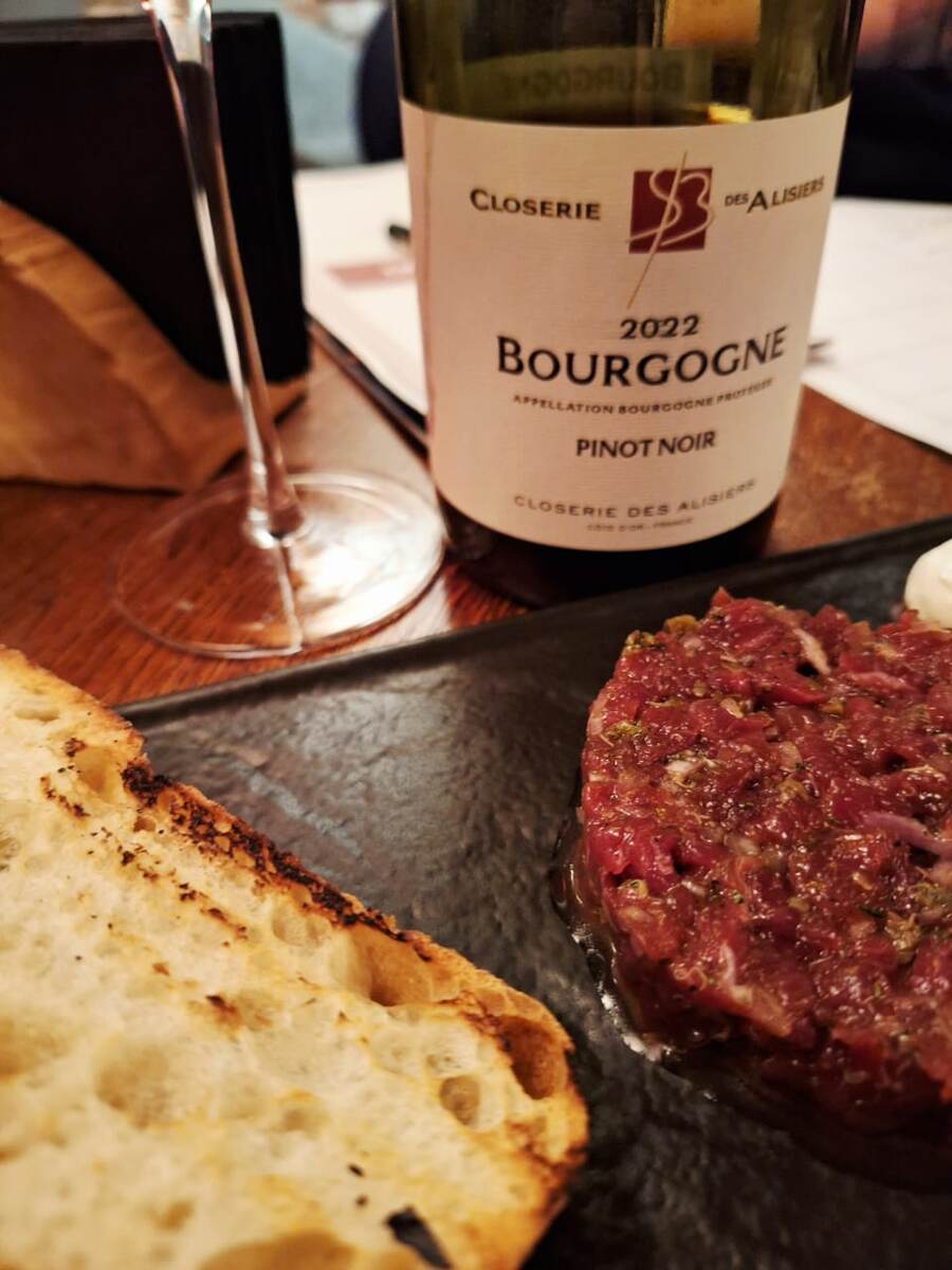 Базовый французский пино нуар из Бургундии. Эту позицию винодельня делает исключительно из покупного винограда. Пино нуары начального уровня, кстати бывают, как откровенно слабыми, так и весьма приличными. И этот - неплох. Звезд с неба не хватает, но удовольствие приносит. В аромате уже есть и подлесок и кожа фирменные нотки пино нуара видны. Во вкусе ягоды и даже танин "шершавит язык", ноты кожи и шкурки винограда. Свежо, бодряще, а под тартар из говядины очень даже неплох, хотя паштет из утки зайдет, наверное, лучше. Вино это из эксклюзивного портфеля гипермаркетов "Глобус". Ввозится к нам с практически незапамятных времен и на его примере интересно проследит динамику цен. Сегодня оно стоит 2200 без скидки и 1800 на скидках. А пять лет назад, в конце 2020 года стоило без скидок 1300 и 950 на скидках. Вот такая интересная динамика. Возвращаясь к вину и ценам - по 1800 мне представляется интересным. Будете в Глобусе - почему бы и не взять.