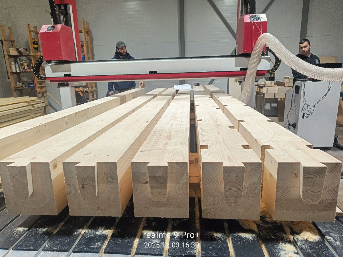 - Скорость обработки. Станок работает без перерывов на обед, 24/7, выполняя за смену объем работы, на который у бригады плотников ушли бы недели.