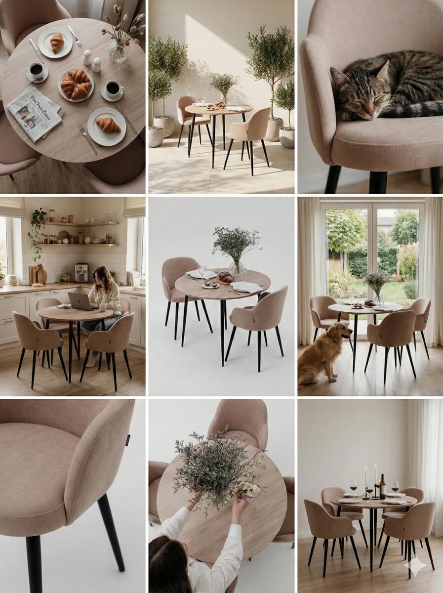 1. Прикрепляете изображение своего товара в Krea, Gemini, Perplexity или Chatgpt 2. Вставляем данный промт: Create a 9-image Pinterest feed for this product in the same aesthetic. Use different locations, angles, and compositions, incorporating people, animals, nature, and various environments while maintaining a cohesive visual style. Получаем коллаж 9 изображений с применением вашего товара в формате лайфстайла И это на самом деле идеальный слайд в карточку товара, который добавляет настоящее живое применение товара. Также можно дальше сгенерировать любое из 9 изображений отдельно в хорошем качестве и использовать его. Просто прикрепите коллаж как референс и опишите изображение , которое хотите повторить с точностью в 100% А, и еще лайфхак: если вы замените в промте Pinterest на Wildberries card, вы по сути получите готовую карточку товара, или как минимум девять различных слайдов, которые можно использовать как заглавное изображение, так и слайды для карточки товара. Прикрепляю