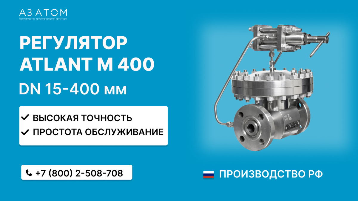 ATLANT M 400 — один из самых популярных регуляторов давления в линейке АЗ АТОМ. Он стабильно работает в условиях, где расход меняется, давление скачет, а среда бывает агрессивной или загрязнённой. В этой статье — инженерное объяснение, почему инженеры и закупщики выбирают именно эту модель. В реальных трубопроводных системах давление редко остаётся стабильным: насос включился, потребители открылись, температура изменилась — и поток пошёл по-другому. ATLANT M 400 относится к регуляторам пилотного действия, а это значит, что: - он быстро реагирует на изменения давления; - не допускает автоколебаний; - работает ровно даже при нестабильных режимах; - обеспечивает мягкое, точное регулирование; - защищает оборудование от перегрузок. Серия закрывает большую часть инженерных задач на объектах: - газораспределительных станций; - ПНГ и технологических газов; - промышленных систем охлаждения и водоснабжения; - химической и нефтехимической промышленности; - систем воздуха и инертных сред. Пилотная