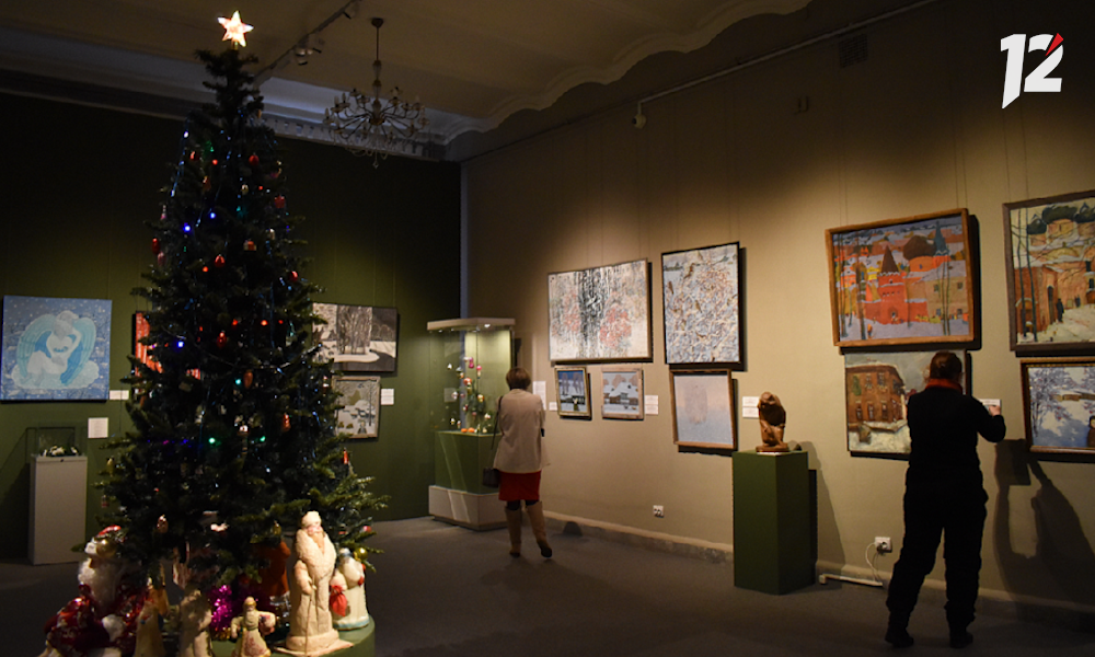В зале представлены произведения, созданные в самых разных техниках, — это живопись, графика, скульптура. Есть предметы декоративно-прикладного искусства. А также миниатюрные фигурки из фарфора и ёлочные игрушки. Кураторы