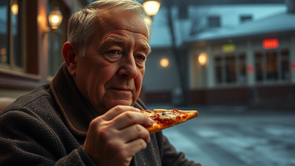 Когда дверь закрылась, Сергей Петрович несколько секунд смотрел на стекло, за которым мелькали огни и снег. На душе стало чуть теплее — не от пиццы даже, а от того, что его присутствие кому-то оказалось важным.
