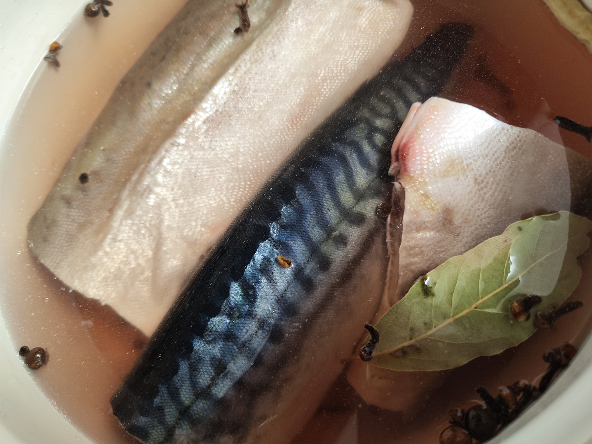 Здравствуйте, мои дорогие читатели и подписчики! В выходные решили приготовить дома рулет горячего копчения из горбуши и скумбрии. Ведь это так натурально, необычно и очень вкусно! Вы сами контролируете состав и степень прожарки, а также можете экспериментировать с ароматами древесной щепы. Начнем с подготовки рыбы: размораживаем,хорошенько вычищаем, удаляем внутренности, обрезаем плавники, промываем тушки под проточной водой и обсушиваем бумажным полотенцем. В кастрюлю наливаем воду, засыпаем соль и специи. Немного подогреваем, чтобы соль разошлась. В рассол погружаем рыбу, обматываем пищевой пленкой и оставляем в прохладном месте на сутки. На следующий день достаем рыбку, промакиваем бумажным полотенцем. В горбушу кладем скумбрию. Перевязываем тушки кулинарным шпагатом (это сохраняет форму при копчении). Подвешиваем "проветриться" на 30-40 минут. Параллельно на гарнир я делала картошку в духовке. Просто почистила картофель, порезала на 4 части. Посолила, поперчила, добавила прованс