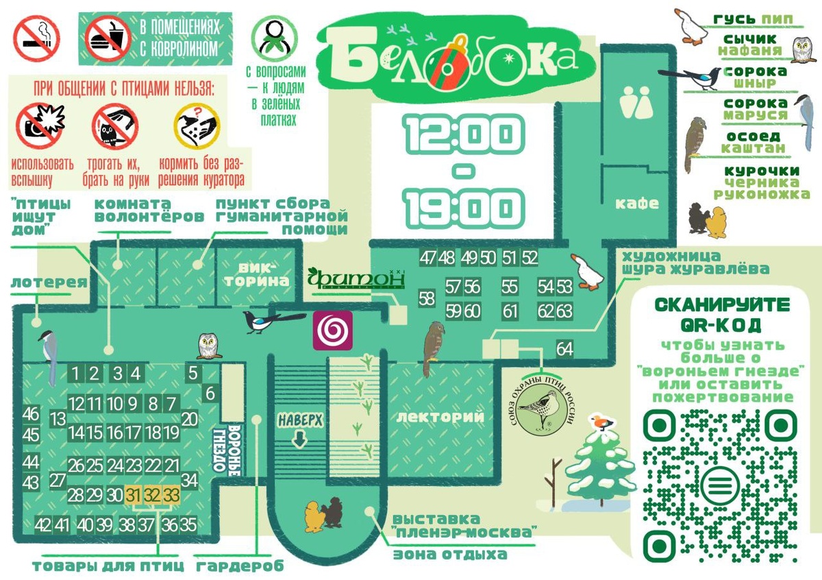»! Благотворительная ярмарка «Белобока» будет ждать гостей 20 декабря в «Благосфере». Адрес: Москва, 1-й Боткинский проезд, д. 7 стр. 1 (метро Динамо) Время работы: 12.00-19.00. Вход бесплатный. ✅Партнеры ярмарки: Союз охраны птиц России Издательство «Фитон XXI» Художница Шура Журавлева ✅Программа ярмарки: Лекторий Орнитологическая викторина Благотворительная лотерея Зона "Птицы ищут дом" Выставка картин Игрушки и лакомства для птиц Пункт сбора гуманитарной помощи Ручные птицы - подопечные фонда ✅Участники ярмарки: 1 Forest tales jewelry 2 Алла Ситницкая 3 Сопряжение сфер 4 BirdyBook 5 Birdwatcher Shop и Отморозок у реки 6 Сойка наплела 7 SEQUOIA Recycled 8 Nemuranka 9 МАСТЕРСКАЯ МИЛОТЫ 10 Tantalia handmade 11 ✥ Нефритовый комарик ✥ 12 Керамика ручной работы "Лисавед" 13 Иди через лес 14 EL Berry 15 Мастерская "Фронтир" 16 Грибные псины 17 myanpi 18 Steampunk We Trust 19 By: AngryGooseberry 20 Мастерская Евгения Хонтора 21 Ptiček 22 лунь украшения /\ ∑ |÷| A • /\ Y |÷| Ь 23 18.12br