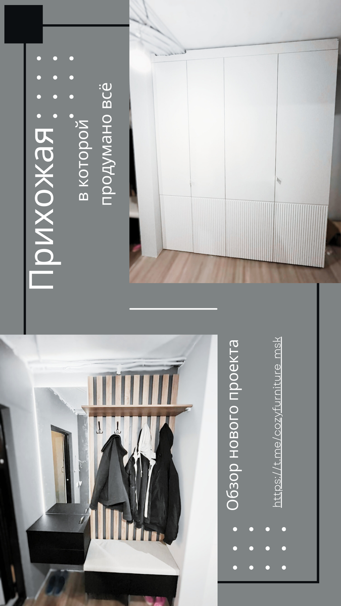 Начну с вопроса: что общего у большинства прихожих в панельных домах? Они узкие, тёмные и вечно завалены вещами. Именно с такой задачей к нам обратились Наталья и Александр из Митино. Им нужен был не просто шкаф, а система, которая решит три проблемы сразу: хранение одежды семьи, удобное место для обувания и визуальное расширение пространства. Бюджет — 200 000 рублей на всё. Показываю, что получилось и как мы распределили бюджет. Параметры: длина стены ~3.5 м, ширина прохода ~1.2 м. Задача — не перекрыть проход. Решение стало композицией из двух объектов: монолитного шкафа-купе, забирающего всю глубину стены, и предельно узкой консоли, выполняющей роль банкетки и туалетного столика. Материалы: Почему каркас из ЛДСП EGGER, а фасад из МДФ? ЛДСП — жёсткость и долговечность каркаса. МДФ — возможность сделать бесшовный фасад (цвет «Тальк») и фрезеровку «волна». Конструкция: Высота 2500 мм до потолка — убираем пылевую полку. Внутреннее наполнение — не стандартные полки, а зонирование: высока