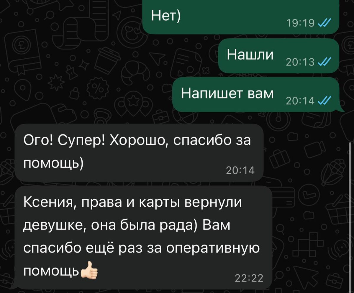 А права нашли в тук туке мои клиенты, которых я заселяла в Копакабану)