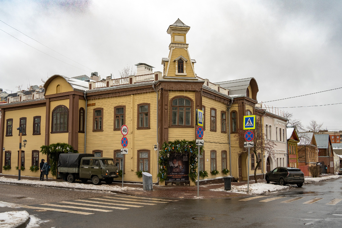 Нижний Новгород настолько прекрасен, что приезжать сюда можно неоднократно, практически как в Питер, куда если верить интернет-мему надо ехать в любой непонятной ситуации. А раз так, нужны достопримечательности помимо общеизвестной Стрелки, Кремля, Покровской с Рождественской и парка 800 летия с прекрасными видами на закат. Небольшой ромб с деревянной застройкой (улицы Короленко, Новая, Славянская, Студёная), зажатый между многоэтажками. Здесь сохранилось 28 исторических деревянных домов, самые старые из которых помнят середину XIX века. Это был район отставных солдат, ремесленников, купцов, а позже — писателей и инженеров. По этим улицам ходили Горький, Короленко, сюда заглядывал Шаляпин. Когда-то Кремль был чуть ли не единственным каменным зданием Нижнего, а сейчас за пределами заповедных кварталов отреставрированных деревянных жомов практически нет. Назову самые яркие деревянные дома. Студёная, 49