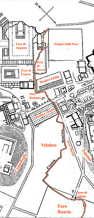 Большая Клоака — схема части античной канализации на карте Древнего Рима