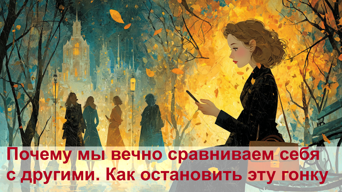 Бывает, листаешь соцсети и вдруг ловишь себя на мысли: «У неё карьера круче», «Они путешествуют чаще», «Их дети уже говорят на трёх языках, а мой…» И вот мы уже погружаемся в воронку самокопания, думаем, как догнать и обогнать конкурентов. Давайте разберемся, почему мы себя так терзаем и как это прекратить. Сравнение – это не просто дурная привычка, а эволюционный механизм. Тысячи лет нам нужно было понимать: «Я достаточно хороша, чтобы меня приняли в группу? Смогу ли конкурировать за ресурсы?» Мозг по привычке сканирует окружение: «Кто впереди? Где моё место среди этих людей?» Сегодня первобытные тревоги маскируются под: - зависть к чужому отпуску в сторис; - тревогу из‑за «не такого успешного» образа жизни; - стыд за квартиру поменьше, машину постарше и так далее. Проблема не в сравнении как таковом – оно помогает стремиться к росту. Проблема в том, что мы: · сравниваем несравнимое – свою жизнь «за кулисами» с чьим‑то глянцевым «кинофильмом» на показ; · выбираем не те «эталоны» (