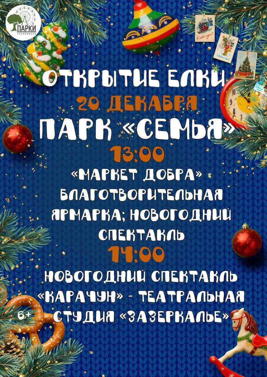 🎄 📍Парк «Семья» Открытие главной ёлки, «Маркет добра», новогодние спектакли 📍Парк Победы Яркое открытие ёлки с играми, мастер-классами и праздничной программой 📍Винновская роща Зимние песни, хороводы и конкурсы 📍Парк Молодёжный Зажжение ёлки, игры и встреча с Дедом Морозом и Снегурочкой 📍Владимирский сад Открытие ёлки, мастер-классы, музыка и танцы в Троицком переулке 🏷️ Вход свободный, формат — семейный и очень декабрьский ❄️ Подробная программа — в карточках 👀 #20декабря25@culturnik #21декабря25@culturnik