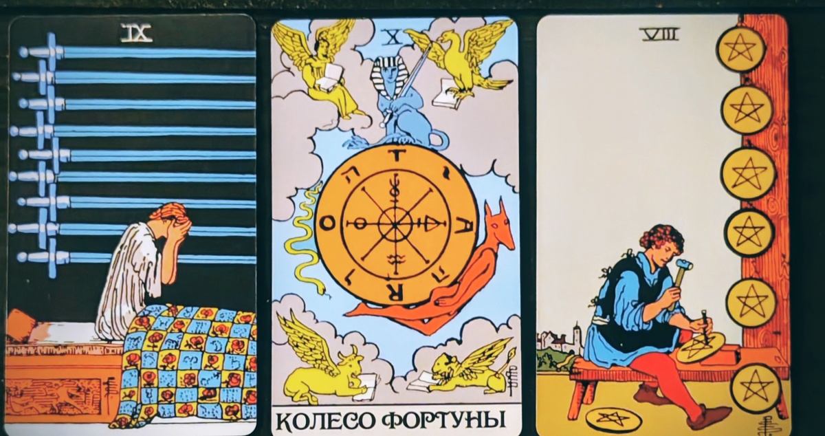 Здравствуйте уважаемые подписчики и гости моего канала.Меня зовут Светлана и в сегодняшним общем раскладе мы посмотрим о человеке,который испытывает чувство вины перед вами. Девятка Мечей-этв карта говорит о том,что есть некий человек,который испытывает очень сильное чувство вины.Это как будто постоянные ночные кошмары,терзания совести,когда человек не может найти себе места.Он постоянно перекручивает в голове свои поступки,сожалеет о сказанных и несказанных словах,о принятых и упущенных решениях.Это такое тяжелое,гнетущее состояние,когда кажется,что выхода нет.Может быть,он что-то сделал,что вас сильно сильно задело,или ,наоборот,чего-то не сделал,и теперь ему очень неловко. Колесо Фортуны-показывает,что эта ситуация не просто случайность,это часть жизненного цикла,поворота судь