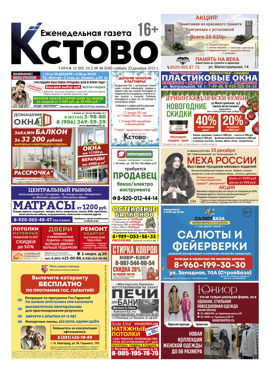 Газета "Кстово" №48 от 20.12.2025 г.