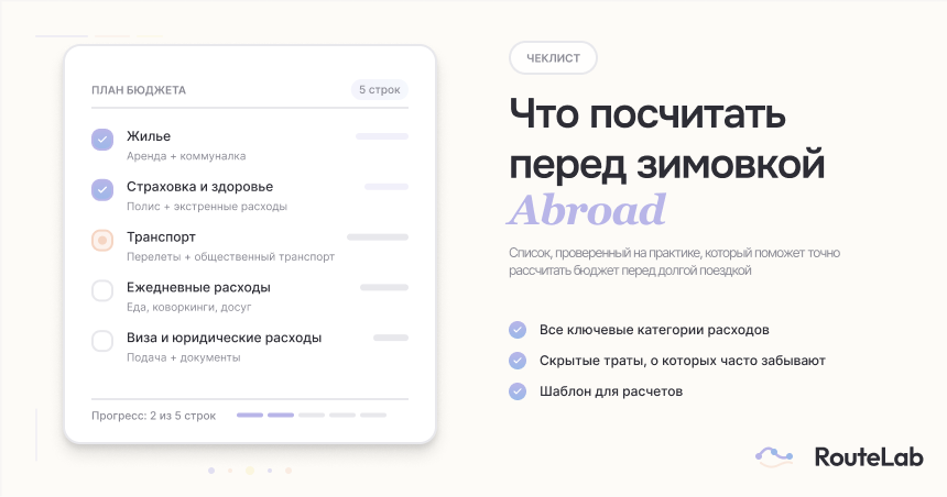 В RouteLab мы как раз помогаем собрать зимовку так, чтобы этот чек-лист не был «страшилкой», а превращался в понятный план: страна/город/район + примерный бюджет под ваш стиль жизни.