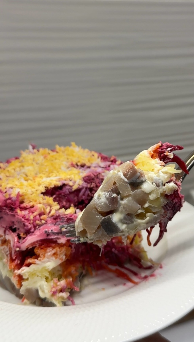 - Баланс вкуса: Соленый и выраженный вкус рыбы становится основой, которую последующие нейтральные и сладковатые слои (картофель, морковь, свекла) постепенно смягчают и уравновешивают.