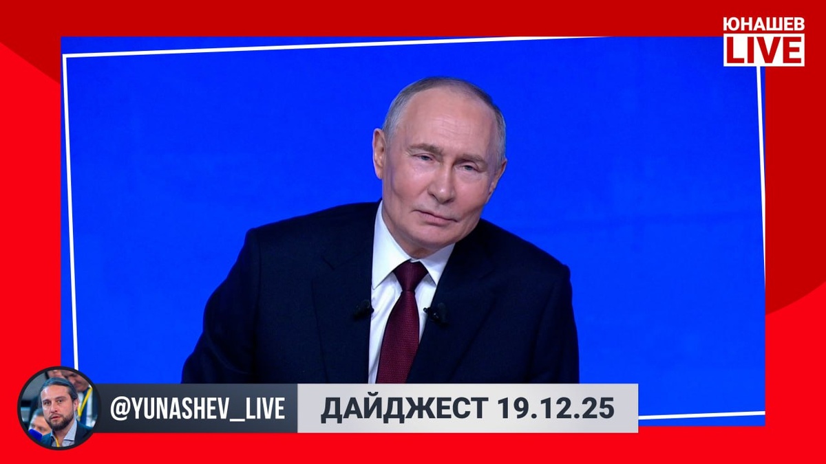 Длилась беседа президента с журналистами и гражданами почти четыре с половиной часа, в течение которых глава государства ответил более чем на сто вопросов. Подробно освещал мероприятие на протяжении всего дня. Что же ещё случилось в России и мире? ▪️Центробанк снизил ключевую ставку еще на полпроцентный пункт. Достаточно ожидаемое решение. В ходе традиционной пресс-конференции глава ЦБ Эльвира Сахипзадовна сообщила, что загадала у Деда Мороза инфляцию 4% в новом году. Мне тоже очень хочется верить в хорошее и доброе. ▪️Как я и предполагал, европейцы не договорились об использовании наших замороженных активов. Но от спонсирования Украины не отказались — обещают выделить 90 миллиардов евро за два года. Ряд здравомыслящих стран отказался участвовать в этой кормёжке киевских коррупционеров. ▪️Киевсовет проголосовал за снос памятника Михаилу Булгакову. Культура им не нужна, пусть нам отдают. Юнашев LIVE теперь и в МАХ 💬 Задать вопрос