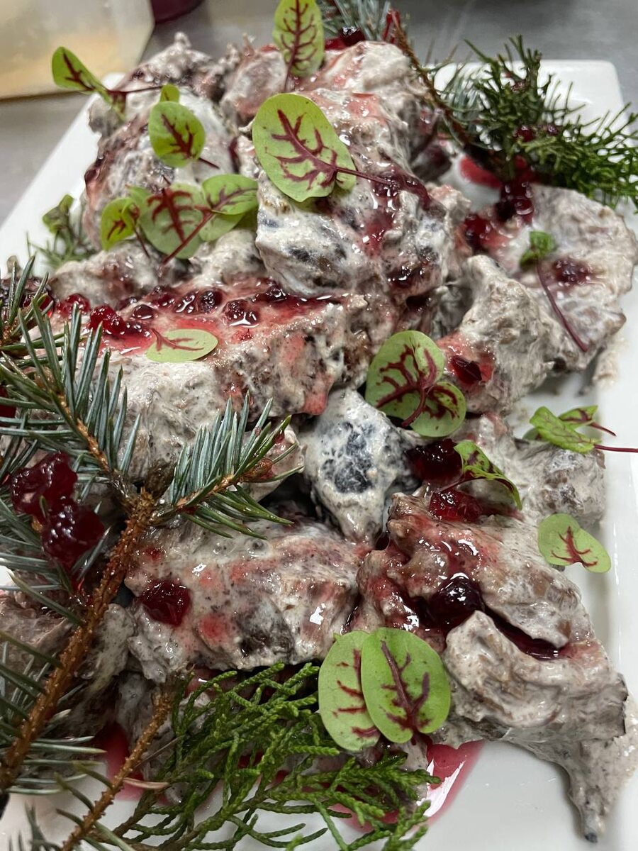 Дикий Олень с 3 мя соусами /дикие лесные ягоды /брусника/белые грибы