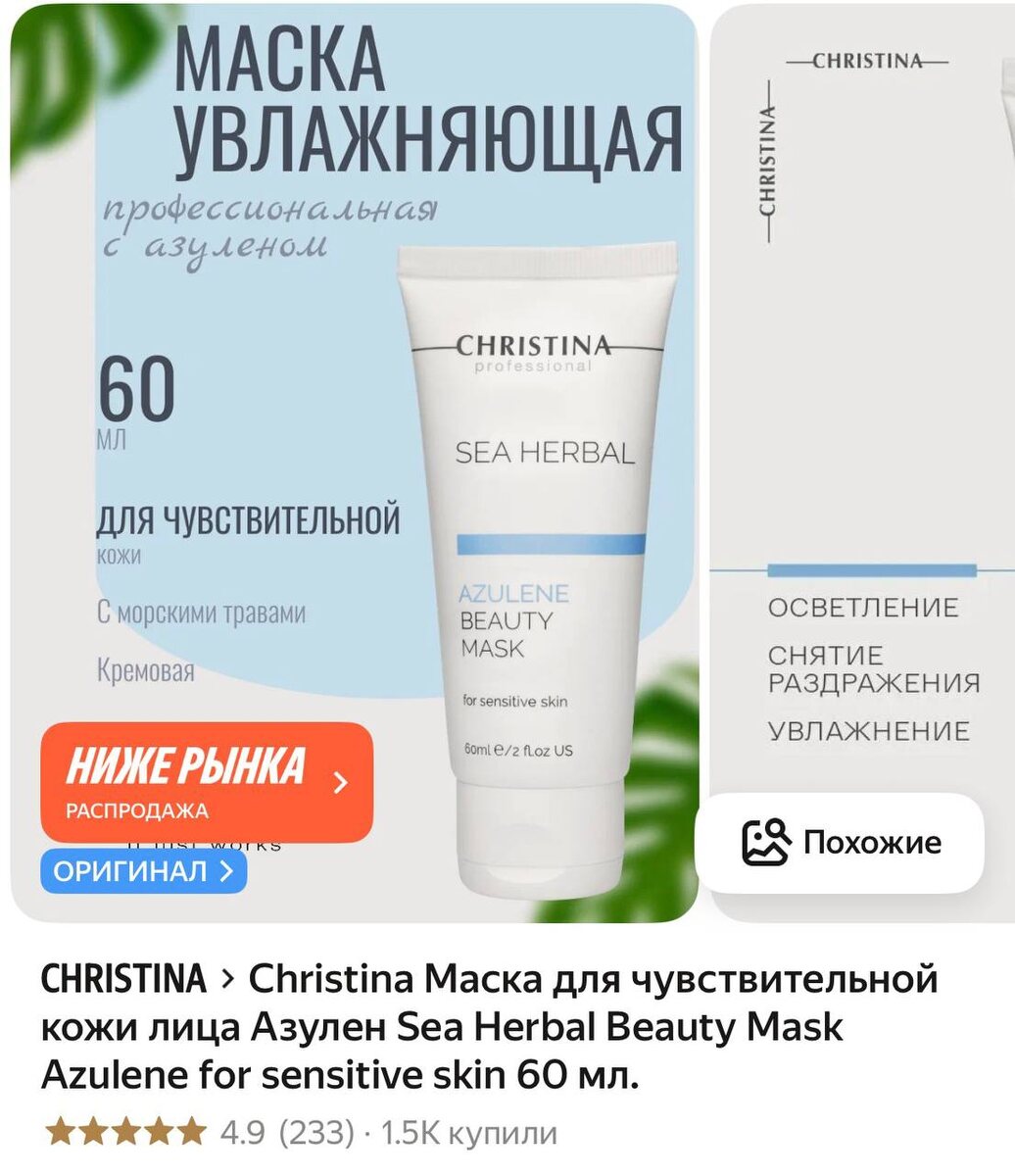 Christina Маска для чувствительной кожи лица Азулен Sea Herbal Beauty Mask Azulene for sensitive skin 60 мл.