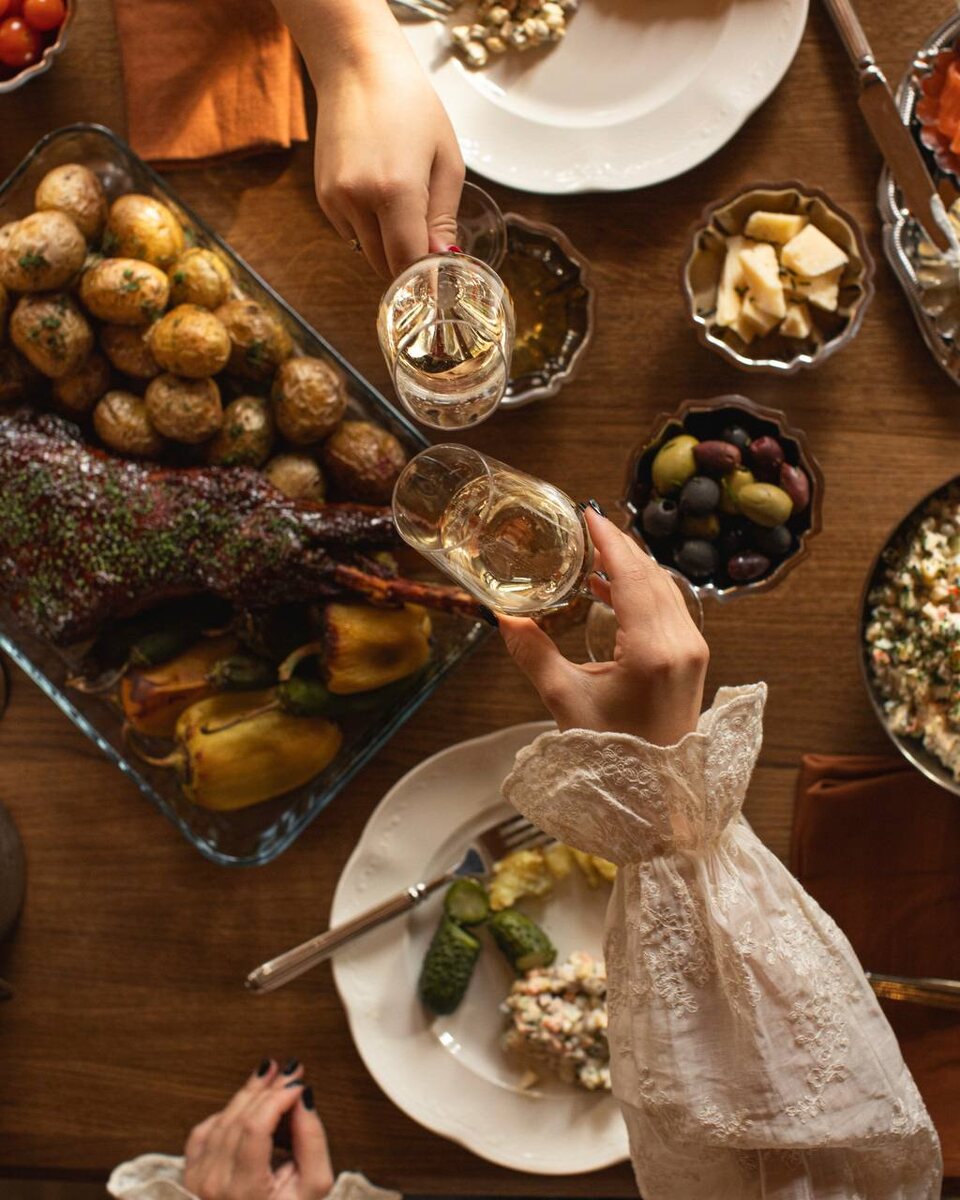 Dachniki собрали свой новогодний стол для дружеских компаний В меню вошли мандарины и виноград, мини-тартин со слабосолёным лососем, красной икрой и взбитым сливочным маслом, микс оливок и маслин, сыры и мясные деликатесы. Ну и какое новогоднее застолье может обойтись без «тазика» оливье с говяжьим языком. Главным блюдом стала запеченная лопатка ягненка с ароматными запеченными перцами и картофелем. А для торжественного звона бокалов в сет включили бутылку игристого вина. Заказывать его можно до 11 января. @foodiscovery