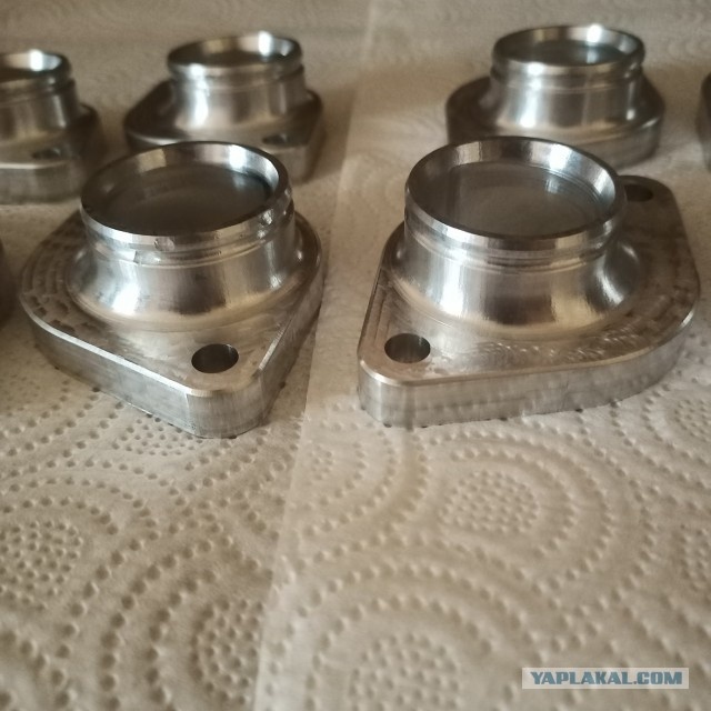 Будет около 70 фото и видео. Больше года назад обратился клиент изготовить переходники для карбюратора на мотоцикл, заказал пару комплектов. Через год от него обратился ещё один клиент и ему их надо было много. Детали в изготовлении не простые, обработка с двух сторон, и с некоторыми нюансами, о которых ниже. 2. Так они выглядят в готовом виде. 3. Для первых черновых операций используем фрезу с dlc покрытием 8x24x60мм Так как сами детали высотой около 30мм, фрезеруем поэтапно, на 24мм глубины увеличивая отступ от стенки - чтобы не терется хвостовиком. 4. Операция черновой фрезеровки центрального отверстия. Очень эффективная траектория, врезаемся по спирали у центра, и далее с степ овер 30% снимаем по 1мм. 5. Эта фреза-зубастик вид сверху. 6. Черновые операции на первой стороне. Фейс Черновая выборка Получерновая выборка. В углу заготовки предварительно делаем выпилы - это будет наш 0 по XY чтобы при перевороте базировать 0. 7. Вид на получерновую при увеличении. 8. Вид после чистовой.