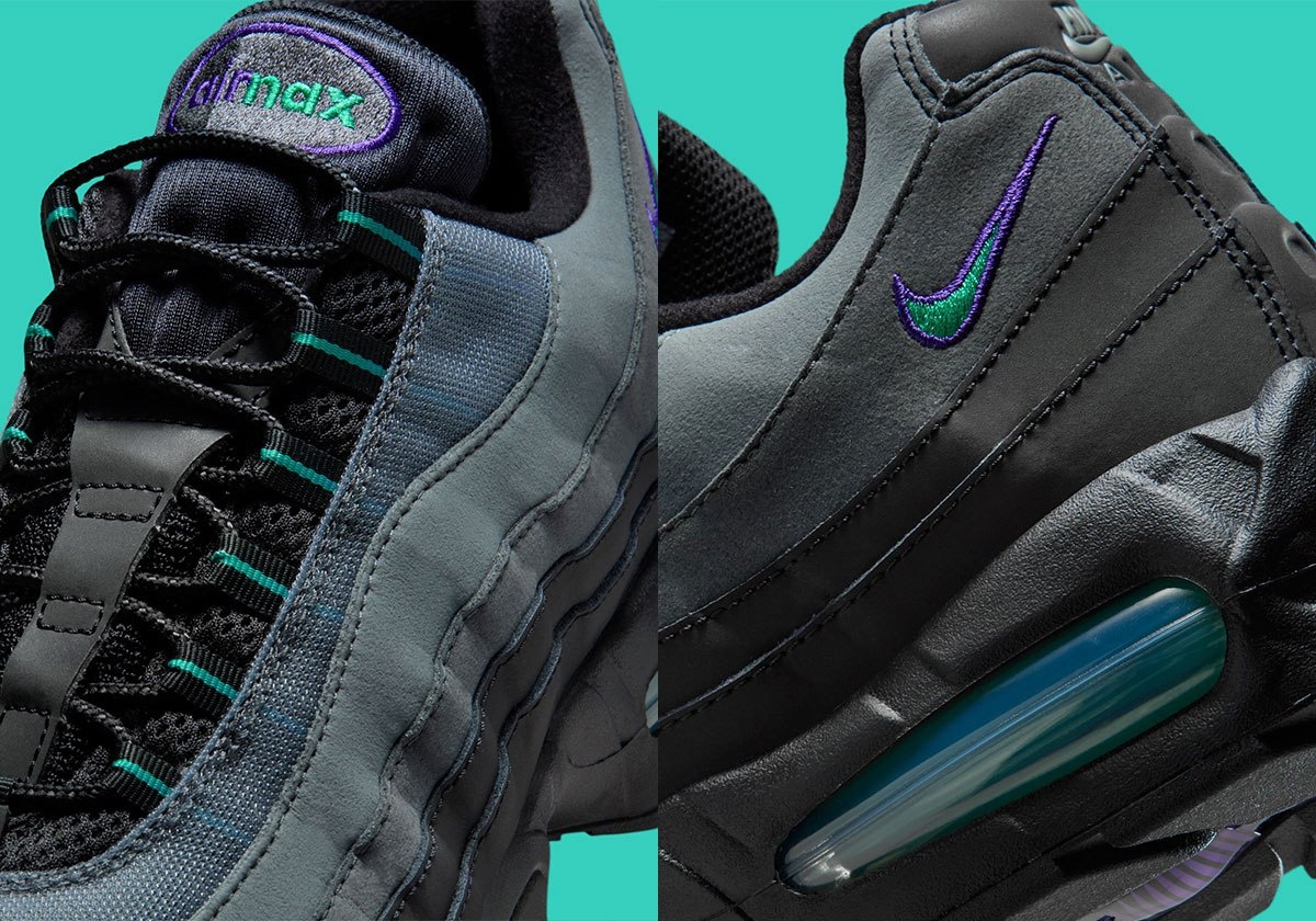 " 🍇 Nike представили новую версию Air Max 95, вдохновлённую расцветкой "Grape". Модель выполнена в сочетании чёрного и серого оттенков с акцентами Court Purple и Dusty Cactus на элементах Swoosh, язычке и подошве. Пятка и шнуровка также выполнены в чёрном цвете. Ранее Nike выпускали вариации этой расцветки в 2010 и 2018 годах. Планируется выпуск весной 2026 года. 👟