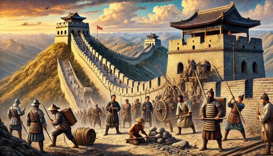 Рабочие часто были солдаты, ленники, крестьяне, а также заключённые. Строительство продолжалось веками, и каждый новый этап дополнял и укреплял структуру.