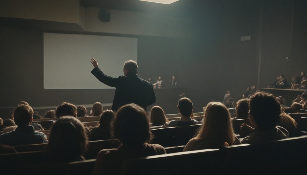 Но произошло нечто неожиданное. Преподаватель даже бровью не повел. Он лишь слегка приподнял уголки губ в едва заметной ухмылке и, закрыв дверцу шкафа, спокойно продолжил свой монолог, как будто ничего не произошло.