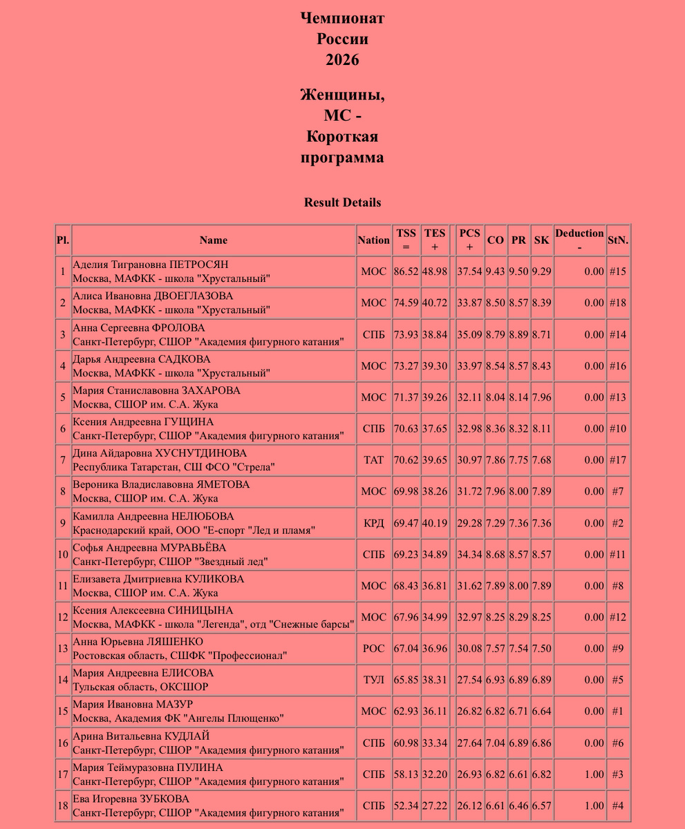 Чемпионат России в Санкт-Петербурге в самом разгаре. Второй соревновательный день был полностью посвящен коротким программам одиночников и одиночниц. И именно чудесные одиночницы завершали вечер пятницы.