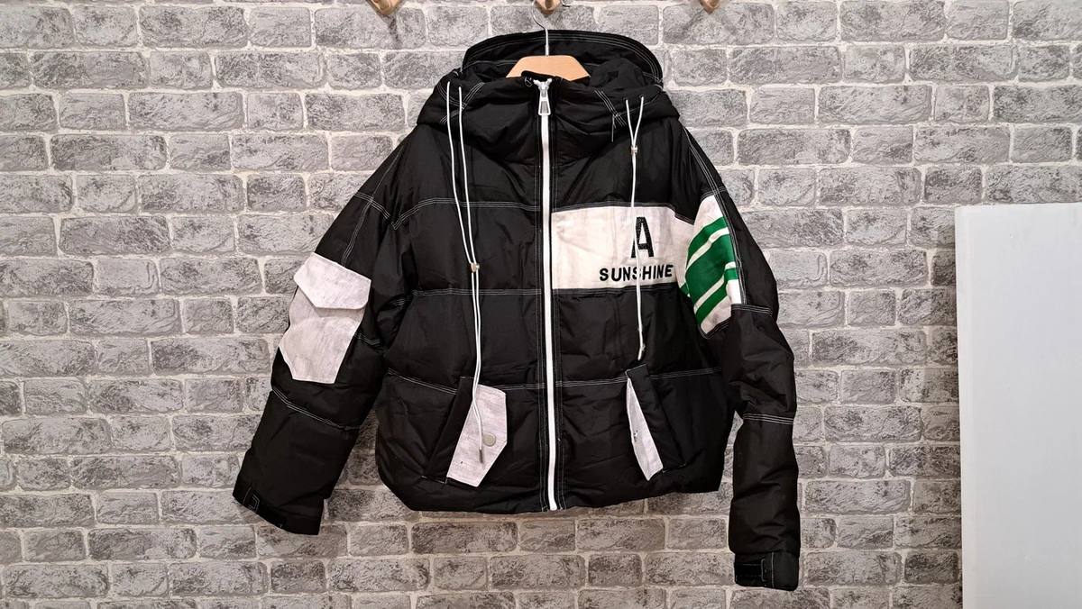 У куртки много запоминающихся деталей, стиль спортивный