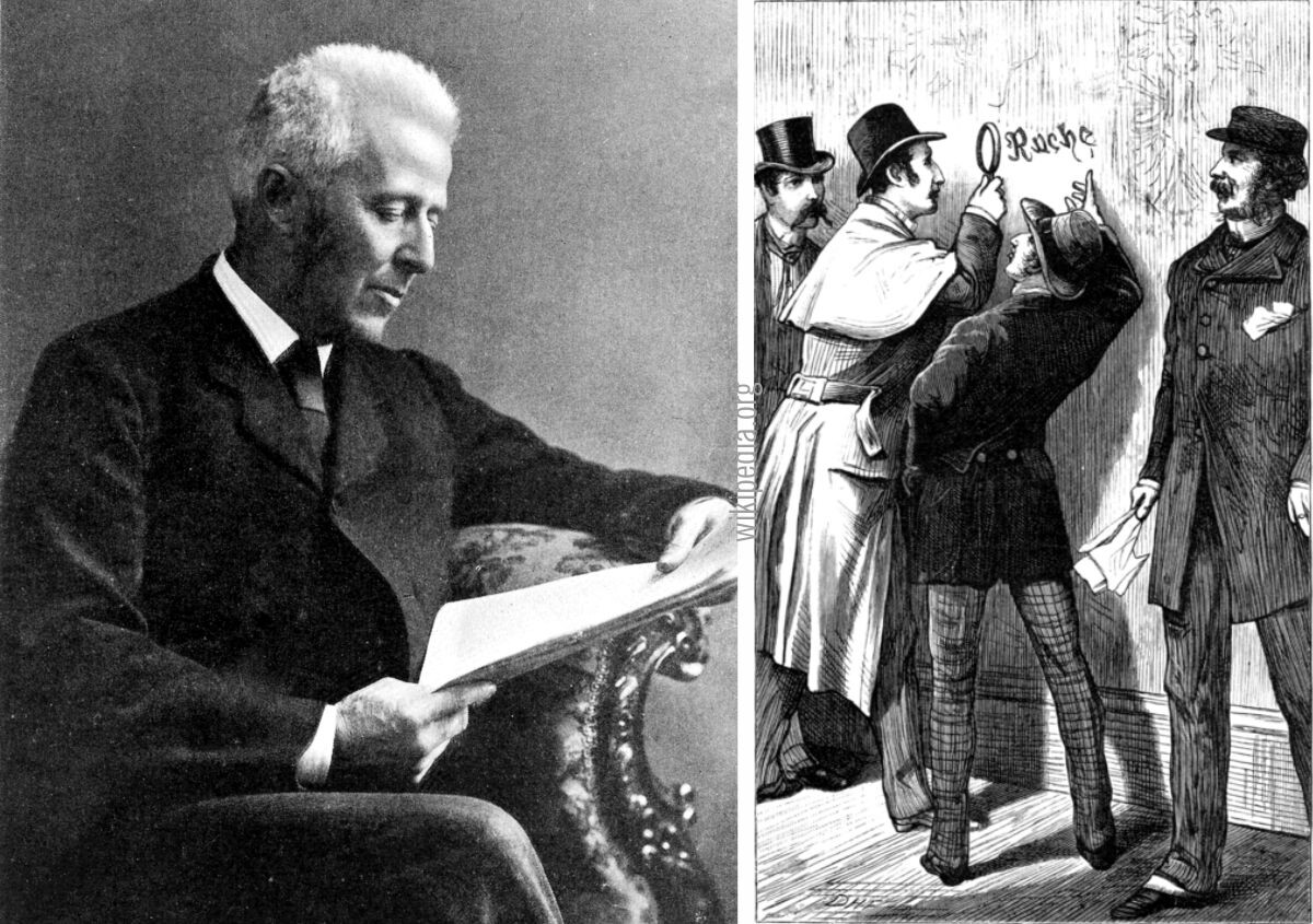 Известно, что у Шерлока Холмса был реальный прототип – шотландский хирург Джозеф Белл (1837–1911), наставник Артура Конан Дойла во время учебы будущего писателя на медицинском факультете Эдинбургского университета. Уникальные способности Холмса – наблюдательность и дедуктивное мышление – основаны на методе Белла по диагностике заболеваний: врач советовал студентам учиться определять профессию и характер пациентов. Чтобы проиллюстрировать свой метод, он часто выбирал незнакомца и, наблюдая за ним, делал выводы о его роде занятий и недавних действиях. Эти навыки позволили ему стать пионером в области судебной медицины. Белла не раз привлекали к участию в полицейских расследованиях; в частности, в 1888 году Скотланд-Ярд обращался к нему при расследовании преступлений Джека-потрошителя. Белл знал, что послужил прототипом Холмса, – Дойл заявлял об этом сам – и гордился литературными успехами своего бывшего студента. Справа – одна из первых иллюстраций к «Этюду в багровых тонах», художник –