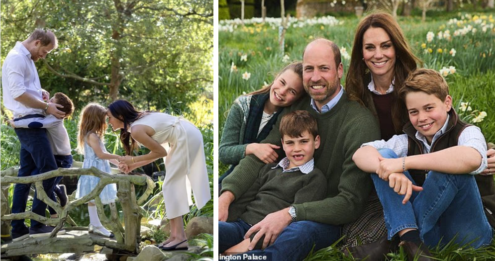 А у Сассексов фото очень и очень постановочное - с продуманной "атмосферой" и композицией (юбка мамы обязательно должна просвечивать, чтобы все в очередной раз вспомнили о просвечивающей юбке принцессы Дианы), с натужной близостью к детям и... полным отсутствием семейного тепла. Как я уже отмечала здесь: