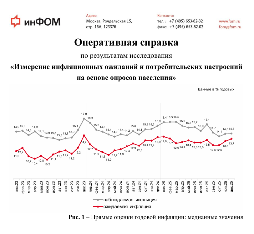 Пока товарищи из Росстата торгуют успокоительной версией реальности, заявляя о замедлении годовой инфляции до благостных 6,34% и микроскопических 0,05% за первую неделю декабря, население демонстрирует угрюмое недоверие. Абсолютно провластный Фонд «Общественное мнение», проводивший свои изыскания в те же дни, обнаружил куда более волатильную картину: средний россиянин оценивает рост цен за последний год в ошеломляющие 14,5%.