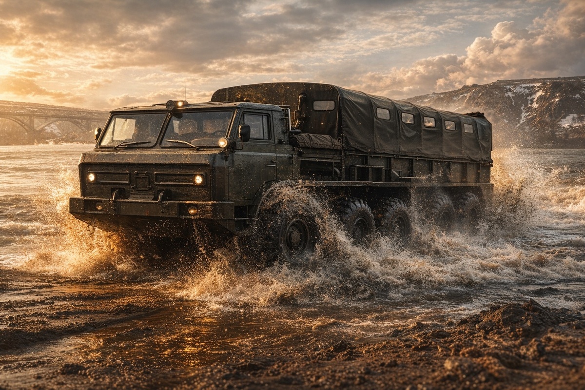 Идет война, мосты взорваны, и колонна советских грузовиков упирается в широкую реку. Натовская разведка с воздуха уже потирает руки, ожидая легкой добычи. И тут происходит невероятное – обычные с виду тентованные машины не останавливаются, а с ходу въезжают в воду и... плывут, превращаясь в боевые катера. Это не сюжет фантастического фильма, а реальная разработка советских инженеров начала 70-х годов. Машина называлась ГАЗ-44 и создавалась в рамках секретной темы «Универсал-1». Почему о ней мало кто знает и зачем вообще понадобилось учить грузовик плавать? Давайте разбираться. В годы Холодной войны в СССР всерьез готовились к боевым действиям в Европе, изрезанной тысячами рек. Строить понтонные переправы – долго и опасно. Куда эффективнее иметь технику, которая умеет плавать сама. Но была одна хитрость. Военные хотели грузовик-хамелеон. Он не должен был выглядеть как лодка (как знаменитый транспортер ПТС или БАВ) – иначе противник сразу поймет: «Ага, это переправочное средство, уничтож