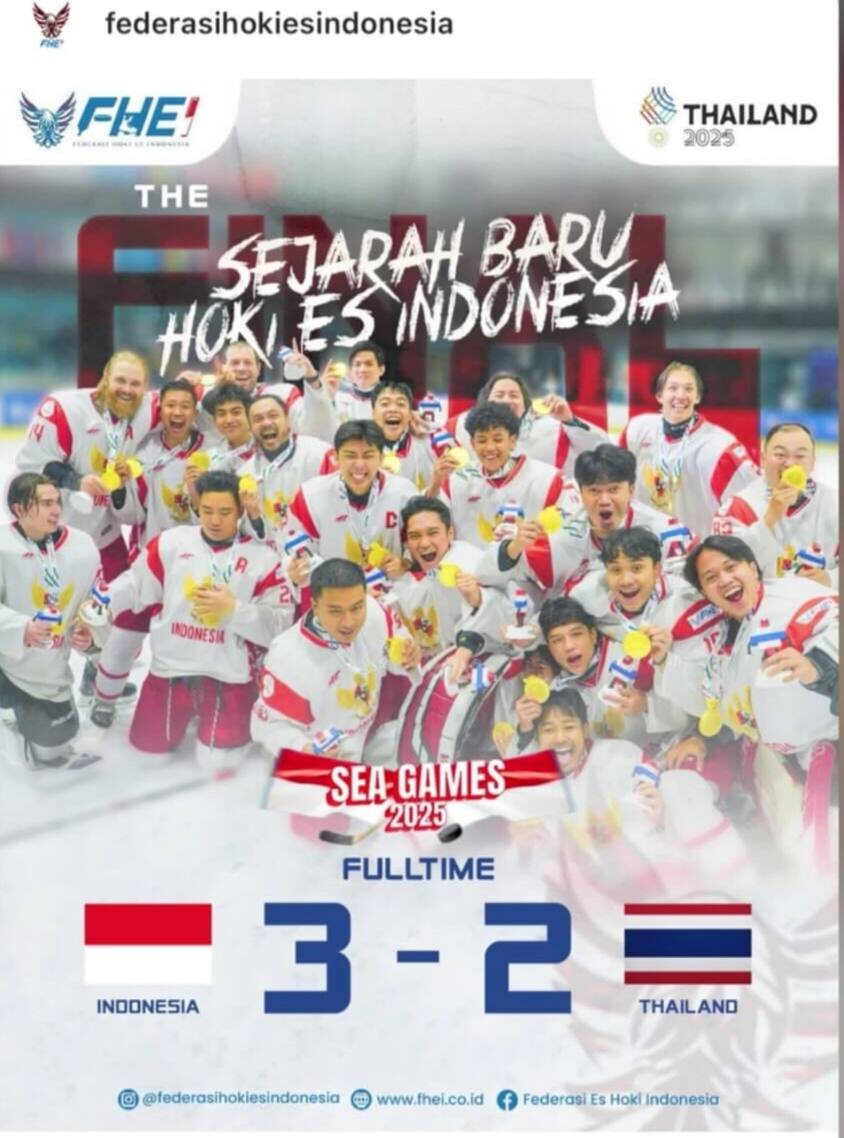 Поздравляю сборную Индонезии по хоккею, главного тренера, играющего, между прочим, тренера команды, моего земляка и друга, Евгения