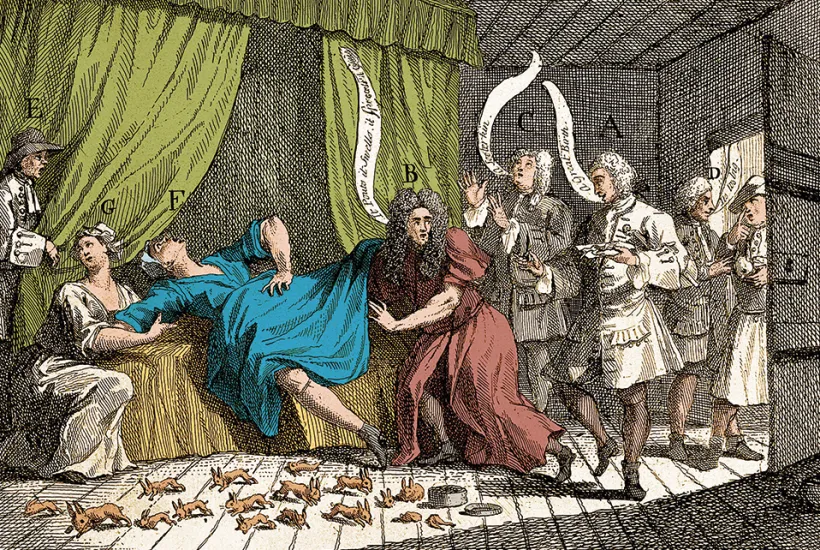 Этот человек, по фамилии Элерс, предположил: Мэри удерживала привязанного кролика у себя на теле, а в нужный момент выталкивала его. И люди верили в мистификацию! Но это лишь трюк! Позвали королевского акушера Ричарда Мэнингена, который тоже засомневался, что Мэри была беременна… Тем не менее, до выяснения обстоятельств, миссис Тофт разместили в удобном поместье Лейси на окраине Лондона. С нее было велено не спускать глаз. А к поместью потянулись люди!