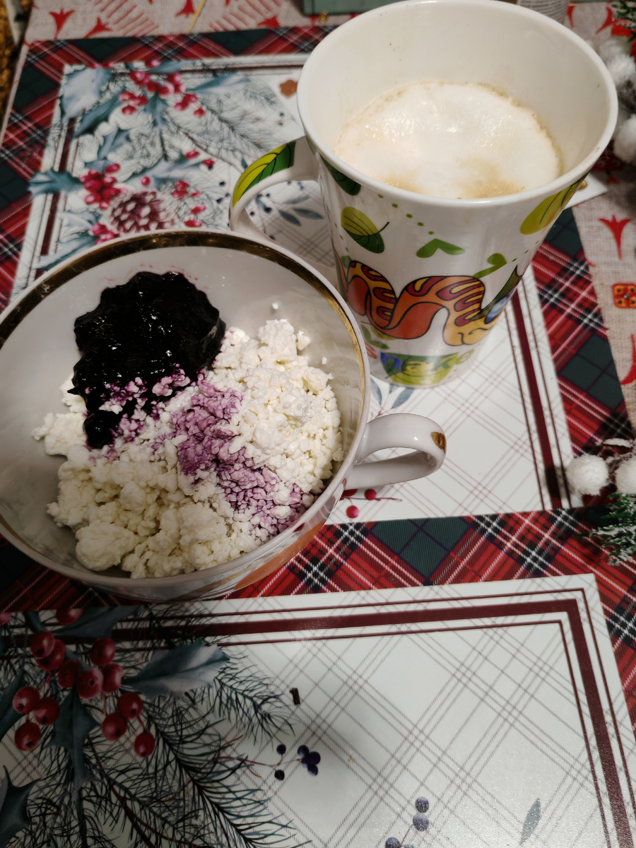 05.35 Пью чай с печенюшками, у собаки творог.