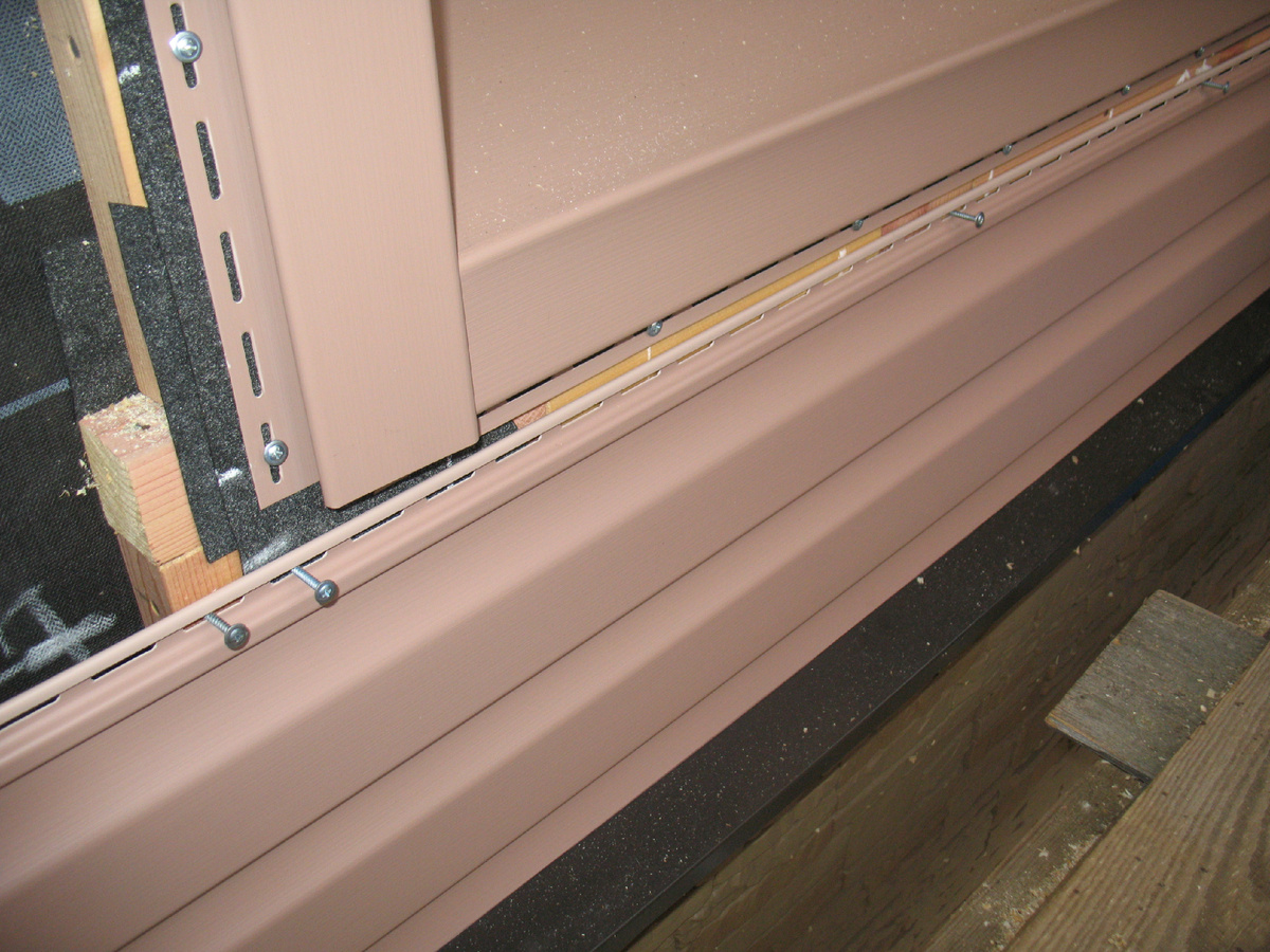Сделать идеальную обрешетку можно, но сложно. Чтобы соблюсти прямолинейность панелей и обеспечить правильные зазоры в местах крепления удобно использовать прокладки из плоских обрезков сайдинга.