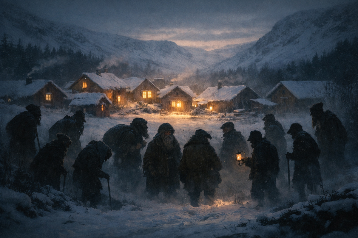 В этот период границы между мирами истончаются. Дом перестаёт быть полностью защищённым пространством. Именно сюда — к людям, к теплу очага — приходят существа зимы.