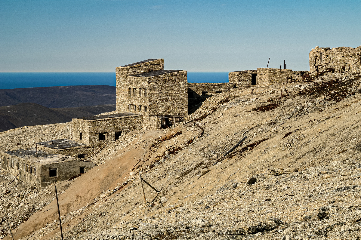 Вверху - фотографии уранового лагеря Восточный в 60 км от Певека Начало: 1. Чаун-Чукотка – южный берег Ледовитого океана | Григорий И. | Дзен Валентин Поскотинов, специально для: Григорий И. Дзен 16 мая 2012 года, командировка на остров Врангеля. Первое, что мы увидели по маршруту – Северный гранитный массив с высоты птичьего полета, известный, как одна из печальнейших страниц истории страны. Высочайшая вершина массива – гора Королева высотой 131 м над уровнем моря, у подножия отрогов которой находятся останки лагерей ГУЛАГа по добыче урана в 1940–1950-е годы: Восточный, Северный и Западный.