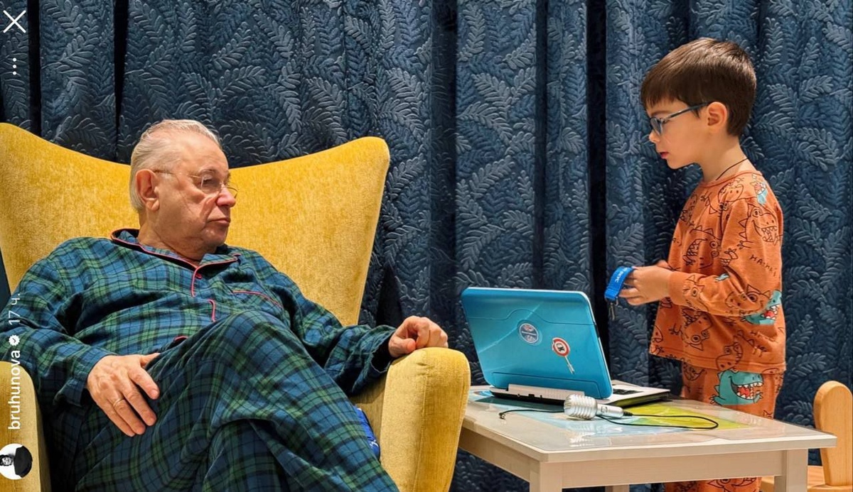 Счастливая семья Петросянов. Сатирик в пижамке. Супружница в душегрейке