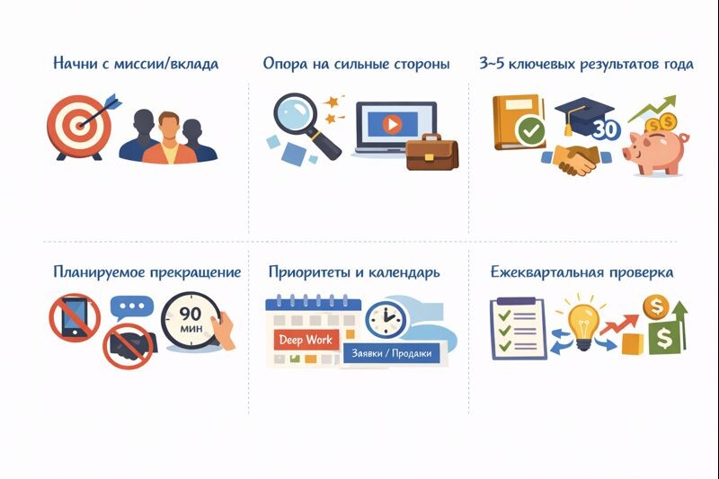 Знаете, что общего между руководителем General Electric Джеком Уэлчем и вами? Оба сталкиваются с одной проблемой: слишком много целей, слишком мало времени. Уэлч решил это радикально — закрыл целые направления бизнеса, которые не были первыми или вторыми в своей отрасли. Компания выросла в 40 раз. Питер Друкер, который консультировал Уэлча и других топ-менеджеров, создал метод планирования не для того, чтобы впихнуть в год максимум дел. Наоборот — чтобы безжалостно отсечь всё лишнее и сосредоточиться на том, что реально даёт результат. Давайте разберём этот подход Шаг 1: Начните с вклада, а не с желаний Представьте двух студентов. Первый пишет в плане: "Хочу получить пятёрки по всем предметам". Второй формулирует иначе: "Хочу разобраться в статистике настолько, чтобы помогать одногруппникам с курсовыми". Чувствуете разницу? Ваша задача: запишите один абзац — какой конкретный вклад вы хотите внести в этом году. В работу, учёбу, семью, своё дело. Шаг 2: Опирайтесь на сильные стороны Друк