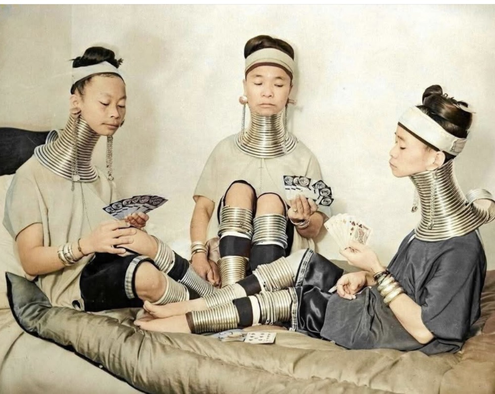 Проволока, из которой она изготовлена, довольно эластичная и ее можно растянуть и снять ожерелье через голову - что периодически и делают, к примеру, чтобы сменить на подрастающей девочке ожерелье на более длинное. От этого у нее не ломается немедленно шея - ношение колец не приводит к полному атрофированию мышц и не нарушает анатомию позвоночника. Шея несколько растягивается - поскольку кольца носят с детства, но также опускаются плечи и ключицы, и все это вместе, а также само ожерелье, создают вид жирафьей шеи. Шеи у них длинные, но не патологически длинные. Ожерелье, конечно, пользы здоровью не приносит - на видео где показывается, как снимают и надевают «кольца», видно, что у некоторых женщин на шее от него синяки и даже ожоги, поскольку эта хрень сильно нагревается под бирманским солнцем.