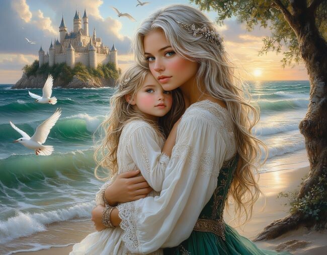 Степания и Морена, словно две ласточки, с разбегу кидаются в изумрудную бездну волшебного моря. Брызги, сорвавшись с их тел, взлетают ввысь мириадами алмазных искр, рассыпаясь в лучах лазурного солнца. Накупавшись вдоволь, они, мокрые и счастливые, валятся на серебристый песок, согретый теплом небесного светила. И тут Морена, с восторгом в голосе, начинает открывать матери дивный мир, сотканный из магии и нежности, в который она погрузилась за этот год.