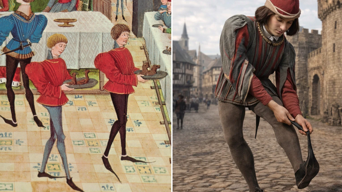 Когда мы смотрим на средневековые миниатюры или картины XV века, мужская обувь с неестественно длинными, заострёнными носами часто вызывает улыбку. Современному человеку такие ботинки кажутся чем-то из арсенала придворных шутов — карикатурными, нелепыми и даже абсурдными.